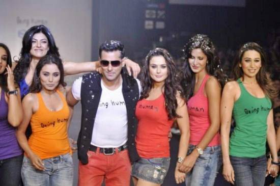 It was a sight to behold. Salman Khan walking down the ramp flanked by all of Bollywood’s top leading ladies. A spectacle that could just top Karan Johar’s feat of getting Amitabh Bachchan, Shah Rukh Khan, and Hrithik Roshan to dance together on the same stage. The show was designed to span the decades, starting with the 1920s, and was opened by Preity Zinta in a black halter dress and wide-brimmed hat, playing coy with a pink feather in her hand. Dressed in a maroon floor-length velvet gown, and looking fitter than ever, was Katrina Kaif, putting those break-up rumours to rest.